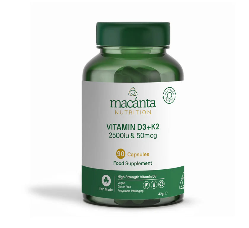 This synergistic formula of Vitamin D3 and Vitamin K2 is designed for those who wish to support their bone health and immunity. Vitamin D is essential for immune function, bone health and mental health. Vitamin K2 maximises the absorption and utilisation of calcium in the bones, while also thought to be beneficial for heart health and for wound healing.