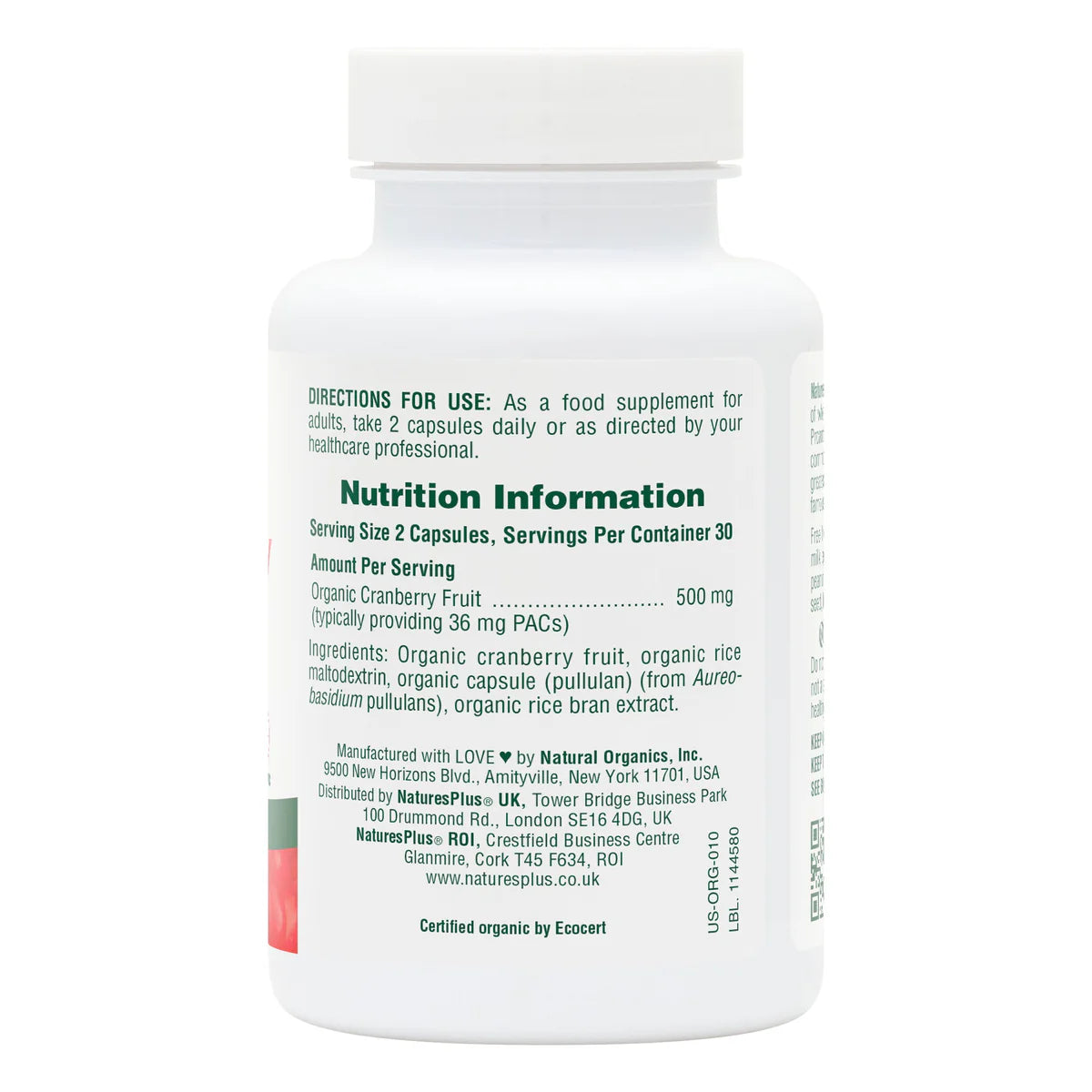 Many people, especially women, turn to cranberry for wellness support. NaturesPlus Organic Cranberry supplies 500 mg of this tried-and-true botanical that also features 36 mg of proanthocyanidins, or PACs—which are responsible for cranberry’s beneficial effects.